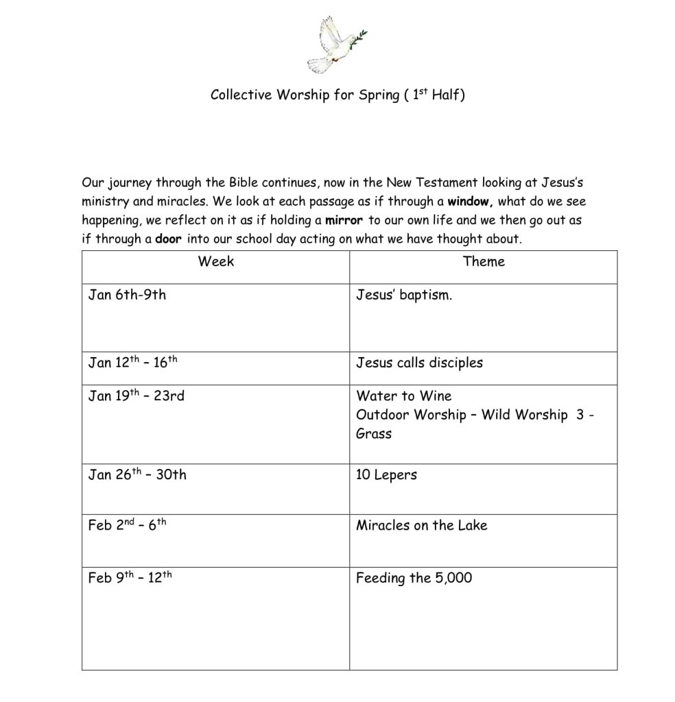 Every school day has a Collective Worship, this involves both pupil led worship and adult led worship. We have visits from our Christian youth worker and local clergy to enrich our worship experience and broaden our learning experience within the community.
